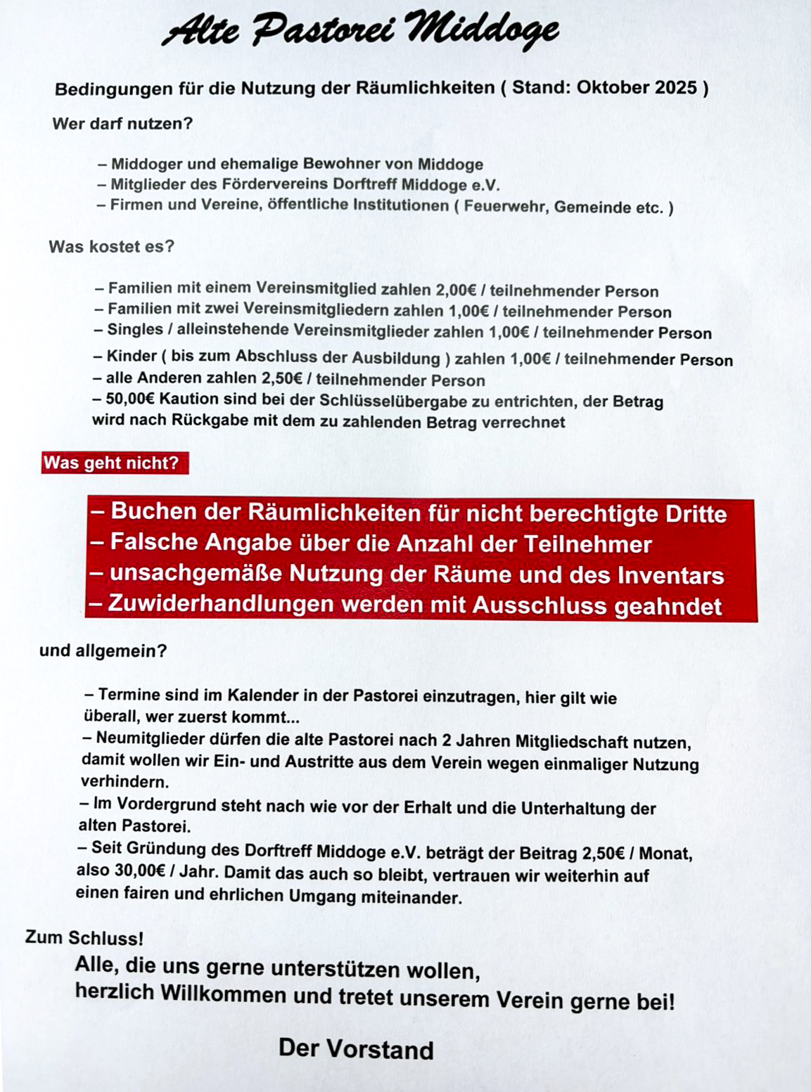 Benutzugsordnung des Dorftreffs der Alten Pastorei